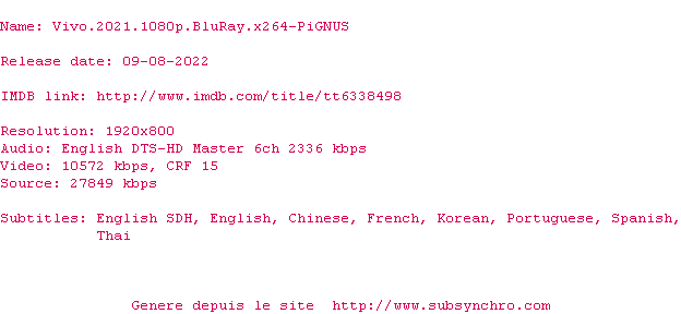 Voir le nfo de la release Vivo.2021.MULTi.1080p.BluRay.x264-Ulysse