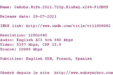 Voir le nfo de la release Jakobs.Wife.2021.720p.BluRay.x264-PiGNUS