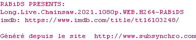Voir le nfo de la release Long.Live.Chainsaw.2021.1080p.WEB.H264-RABiDS