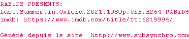 Voir le nfo de la release Last.Summer.In.Oxford.2021.1080p.WEB.H264-RABiDS