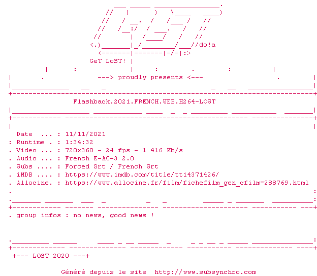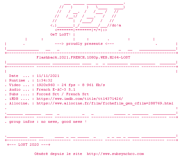 Voir le nfo de la release Flashback.2021.FRENCH.1080p.WEB.H264-LOST
