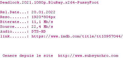 Voir le nfo de la release Deadlock.2021.BDRip.x264-PussyFoot