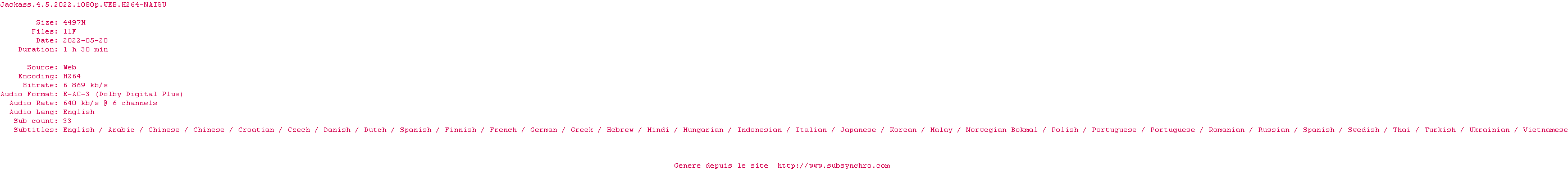 Voir le nfo de la release Jackass.4.5.2022.1080p.WEB.H264-NAISU