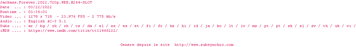 Voir le nfo de la release Jackass.Forever.2022.720p.WEB.H264-SLOT