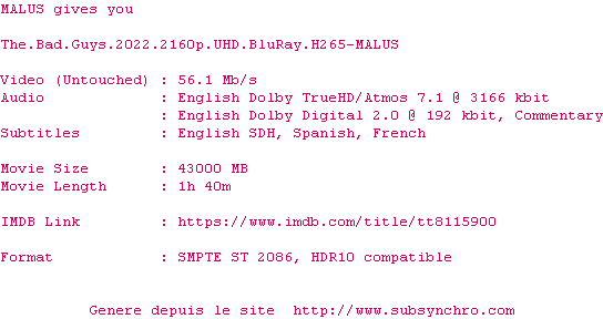 Le commentaire de Yaumegui Commente par Yaumegui (619), Le Dimanche 15 Mai 2022 à 11h42 Très sympa, un début mené tambour battant, de bonnes vannes pour les grands et les petits, des références à Ocean, Moi Moche et méchant. Un bon divertissement familai. 8 / 10 0 0
