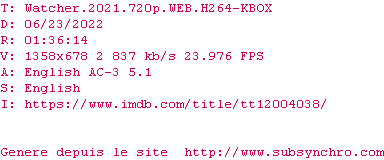Voir le nfo de la release Watcher.2021.720p.WEB.H264-KBOX
