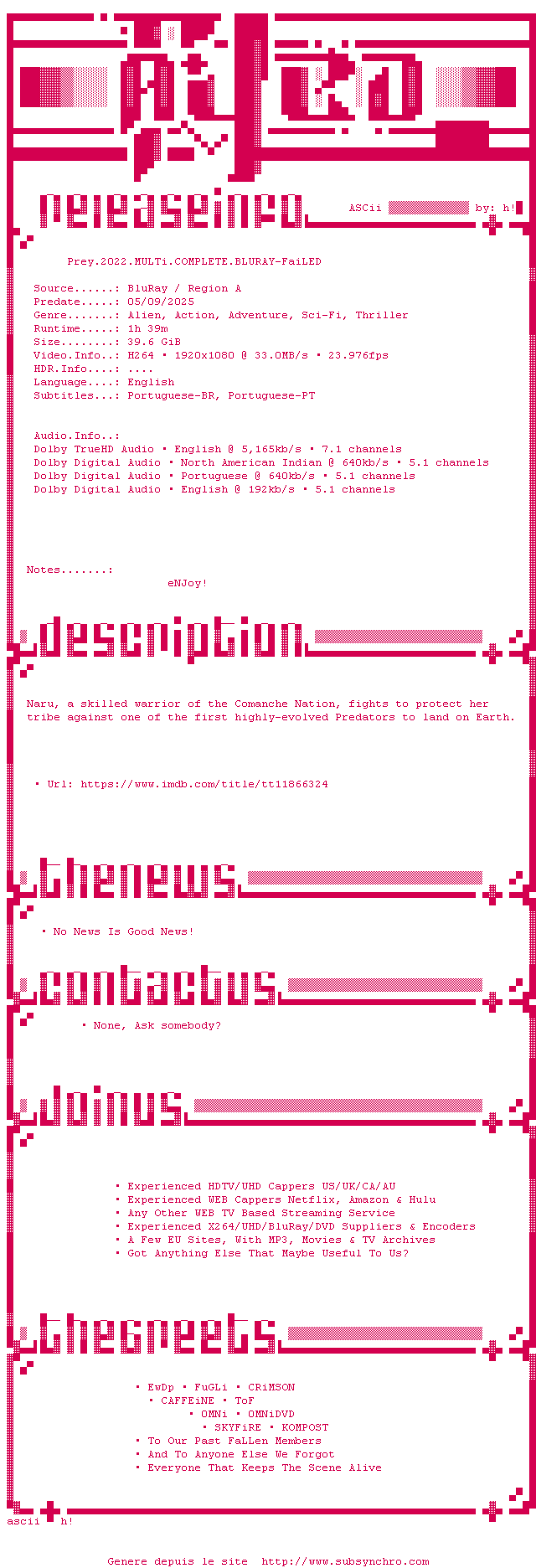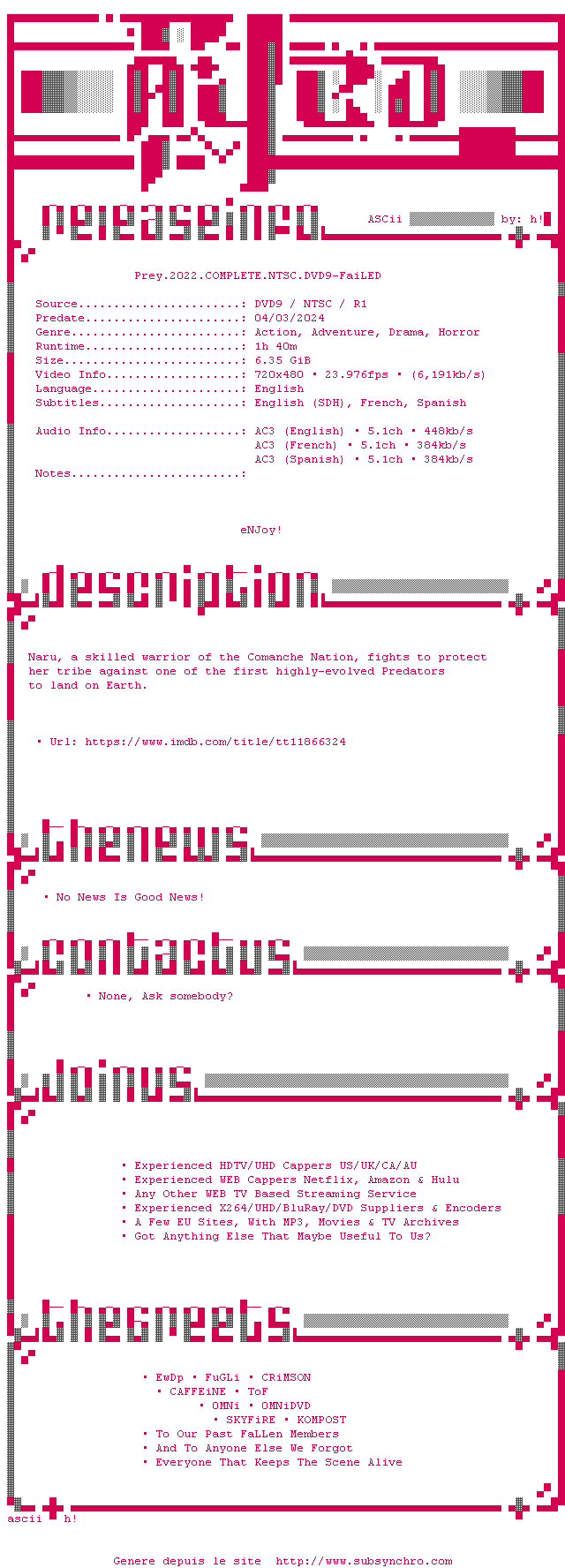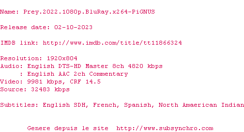 Le commentaire de laclasme Commente par laclasme (9), Le Vendredi 19 Aout 2022 à 12h22 Un bon Predator, dommage que la fin a été bâclé et expédié sans plus d'imagination Un 7 sur 10 (je ne peux pas changé ma note où j'ai mis une étoile de trop) 8 / 10 0 0