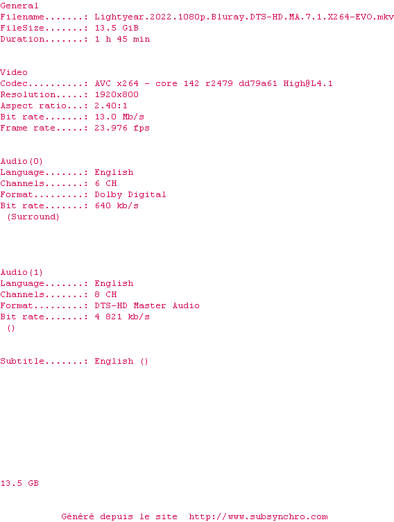Le commentaire de bitonio6 Commente par bitonio6 (276), Le Lundi 29 Aout 2022 à 22h43 Quand j'ai vu les notes sur IMDB je ne m'attendais pas à grand chose et il faut le dire, le scénario partait mal... puis l'histoire se construit, les effets sont vraiment bien, le son est superbe et à la fin, je me suis demandé ce que les gens ont pu lui trouver de mauvais !? C'était très sympa, très réussi et est vraiment dans le film pendant certaines scènes. à voir en VO, bien entendu ! 8 / 10 0 0