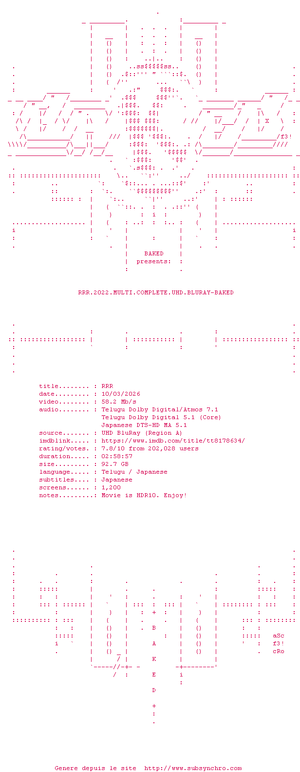 La release RRR.2022.MULTI.COMPLETE.UHD.BLURAY-BAKED est en 4K