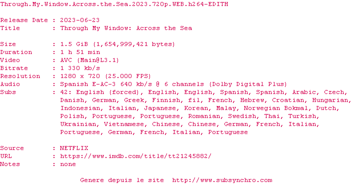 Voir le nfo de la release Through.My.Window.Across.The.Sea.2023.720p.WEB.H264-EDITH