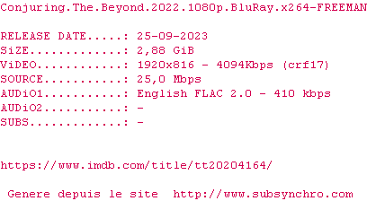 Voir le nfo de la release Conjuring.The.Beyond.2022.1080p.BluRay.x264-FREEMAN
