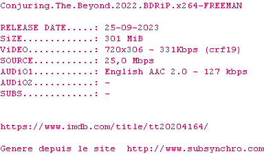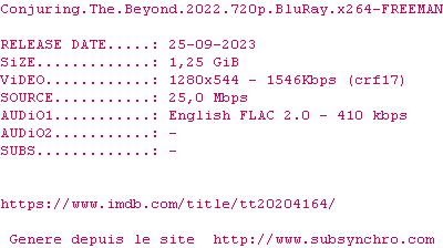 Voir le nfo de la release Conjuring.The.Beyond.2022.BDRiP.x264-FREEMAN