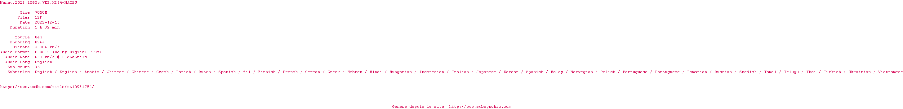 Voir le nfo de la release Nanny.2022.1080p.WEB.H264-NAISU