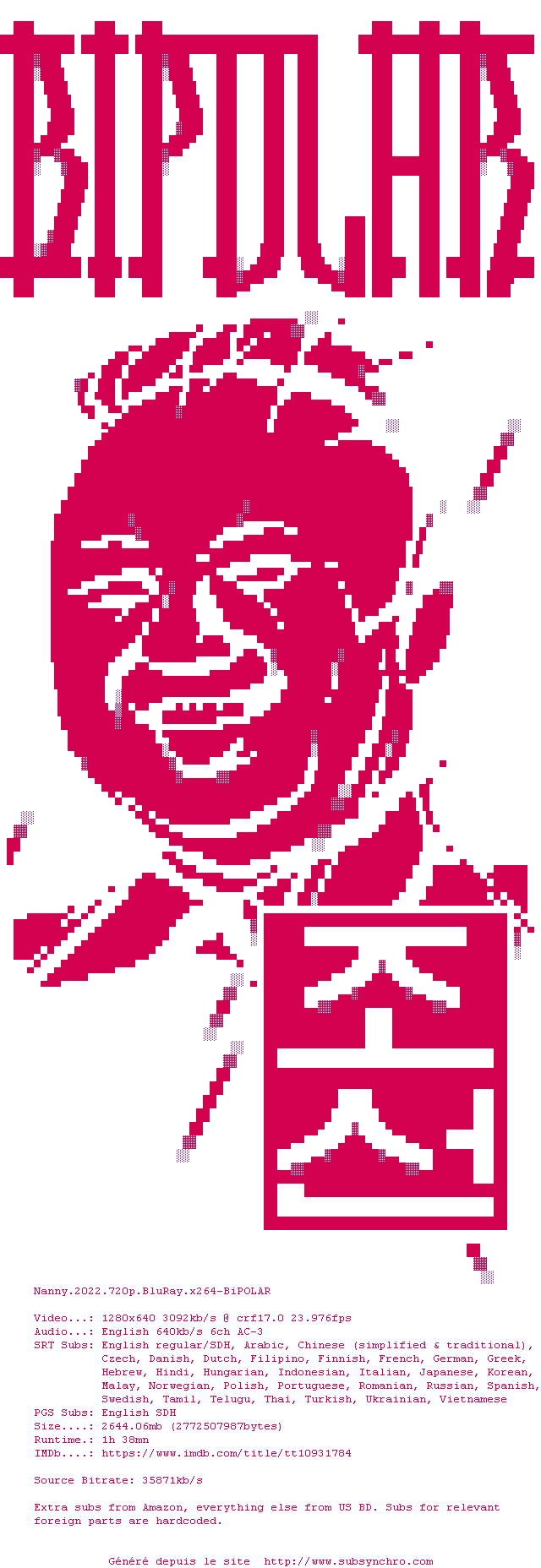 Voir le nfo de la release Nanny.2022.1080p.BluRay.x264-BiPOLAR