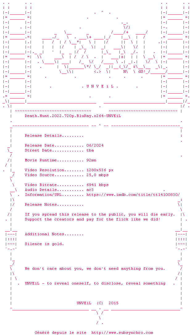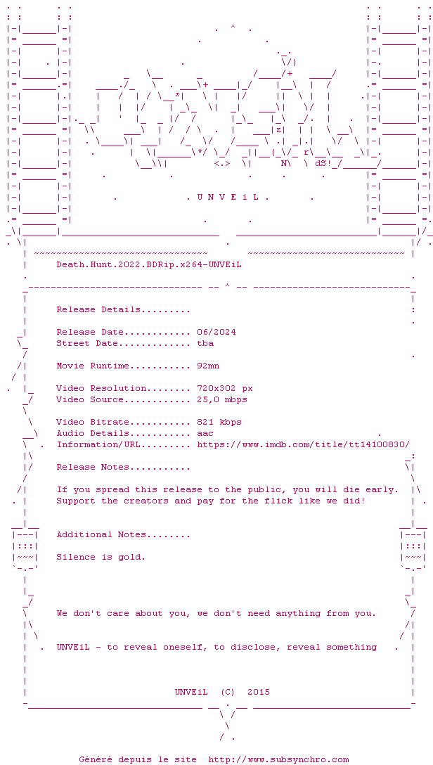 Voir le nfo de la release Death.Hunt.2022.BDRip.x264-UNVEiL