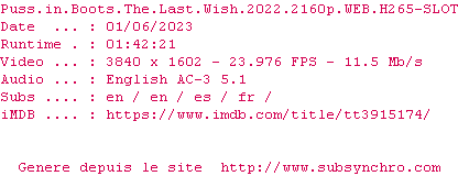 Le Chat Potté découvre que sa passion pour l'aventure et son mépris du danger ont fini par lui coûter cher : il a épuisé huit de ses neuf vies, et en a perdu le compte au passage. Afin de retomber sur ses pattes notre héros velu se lance littéralement dans la quête de sa vie. Il s'embarque dans une aventure épique aux confins de la Forêt Sombre afin de dénicher la mythique Etoile à vœu, seule susceptible de lui rendre ses vies perdues. Mais quand il ne vous en reste qu’une, il faut savoir faire profil bas, se montrer prudent et demander de l’aide. C’est ainsi qu’il se tourne vers son ancienne partenaire et meilleure ennemie de toujours : l’ensorcelante Kitty Pattes De Velours. Le Chat Potté et la belle Kitty vont être aidés dans leur quête, à leur corps bien défendant, par Perro, un corniaud errant et galleux à la langue bien pendue et d’une inaltérable bonne humeur. Ensemble ils tenteront de garder une longueur d’avance sur la redoutable Boucles D’Or et son gang des Trois Ours, véritable famille de mafieux, mais aussi sur Little Jack Horner devenu bien grand, ou encore sur le chasseur de primes le plus féroce du coin : Le Loup.
