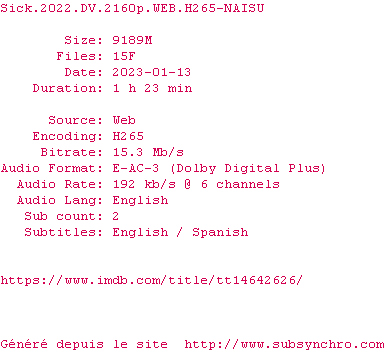 Voir le nfo de la release Sick.2022.HDR.2160p.WEB.H265-NAISU