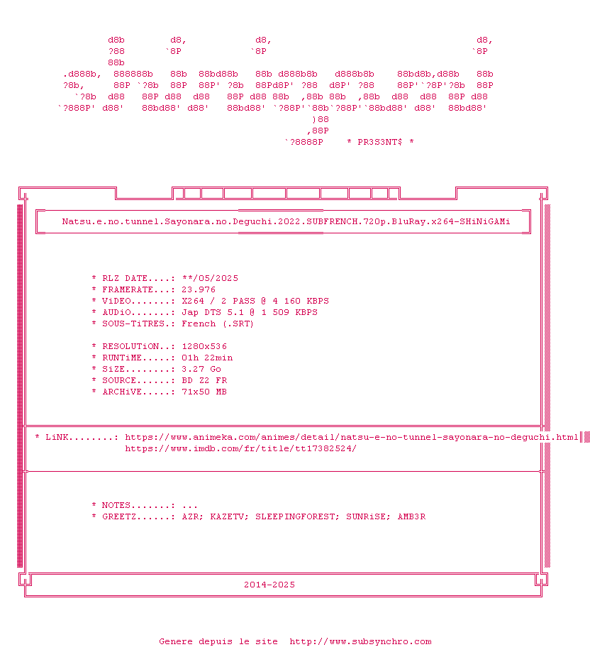 Histoire sympa entre deux personnages attachants, l'aspect surnaturel n'est pas plus développé que ça et sert surtout l'évolution des vrais sentiments. Techniquement, l'animation est somme toute classique, sans que cela ne gâche le plaisir. Il suffit de se laisser embarquer dans le tunnel.