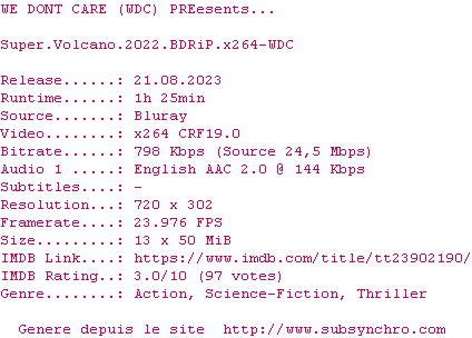 Voir le nfo de la release Super.Volcano.2022.BDRiP.x264-WDC