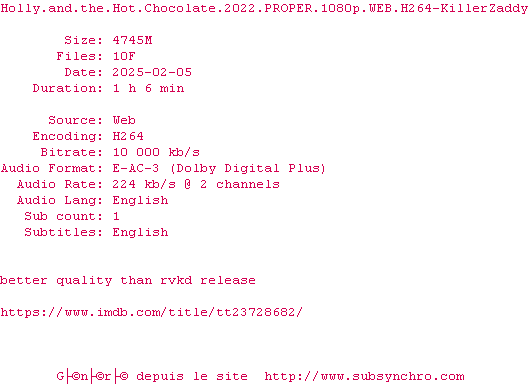 Voir le nfo de la release Holly.And.The.Hot.Chocolate.2022.PROPER.1080p.WEB.H264-KillerZaddy