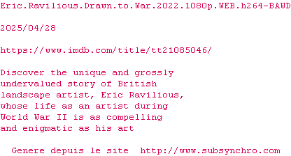 Voir le nfo de la release Eric.Ravilious.Drawn.To.War.2022.1080p.WEB.H264-BAWD