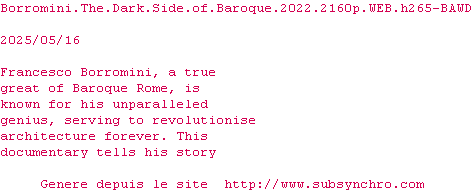 Voir le nfo de la release Borromini.The.Dark.Side.Of.Baroque.2022.2160p.WEB.H265-BAWD