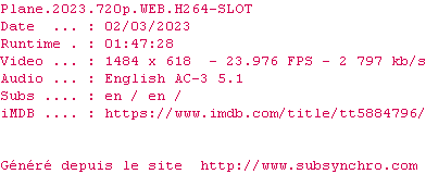 Voir le nfo de la release Plane.2023.720p.WEB.H264-SLOT