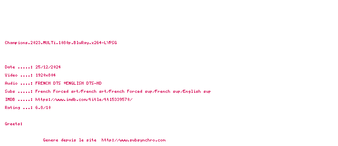 Voir le nfo de la release Champions.2023.MULTi.1080p.BluRay.x264-LYPSG
