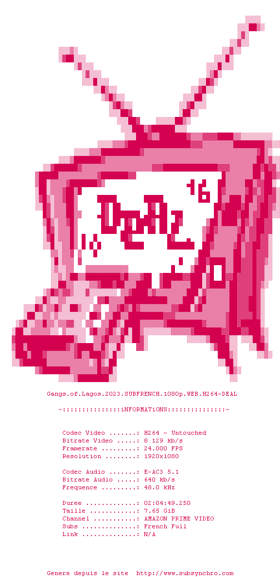 Voir le nfo de la release Gangs.Of.Lagos.2023.SUBFRENCH.1080p.WEB.H264-DEAL