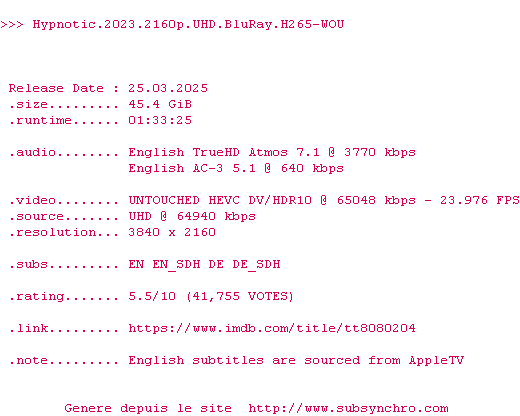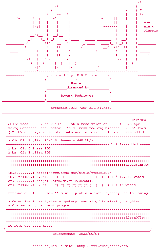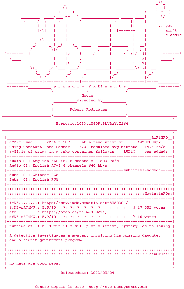 Il y a 1 commentaire pour le film #23245 !Le commentaire de SubSynchro
