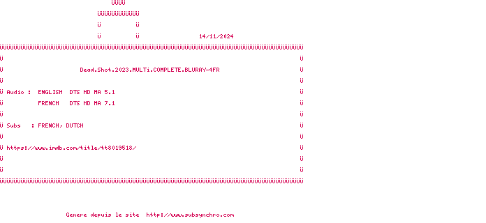 Voir le nfo de la release Dead.Shot.2023.MULTi.COMPLETE.BLURAY-4FR