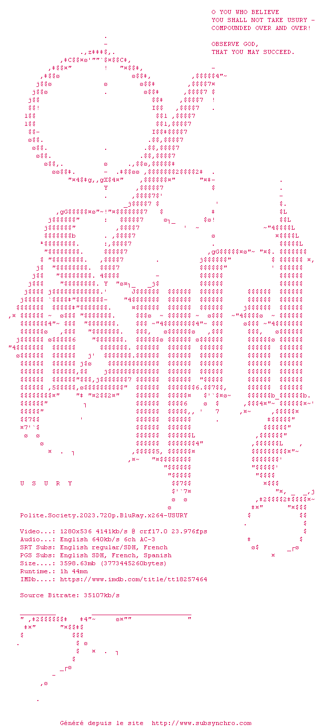 Voir le nfo de la release Polite.Society.2023.720p.BluRay.x264-USURY