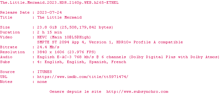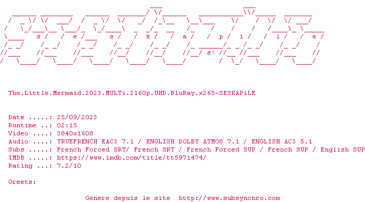 Il y a 1 commentaire pour le film #23889 !Le commentaire de SubSynchro