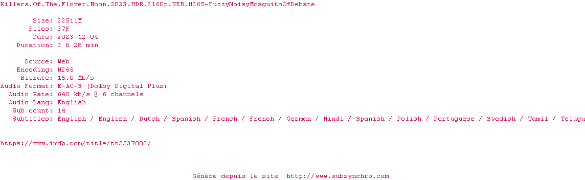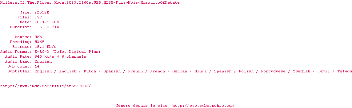 Voir le nfo de la release Killers.Of.The.Flower.Moon.2023.HDR.2160p.WEB.H265-FuzzyNoisyMosquitoOfDebate