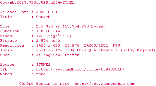 Voir le nfo de la release Cobweb.2023.720p.WEB.H264-ETHEL