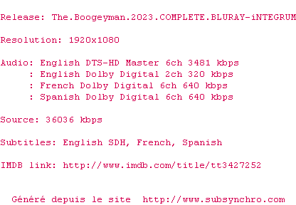 Voir le nfo de la release The.Boogeyman.2023.COMPLETE.BLURAY-iNTEGRUM