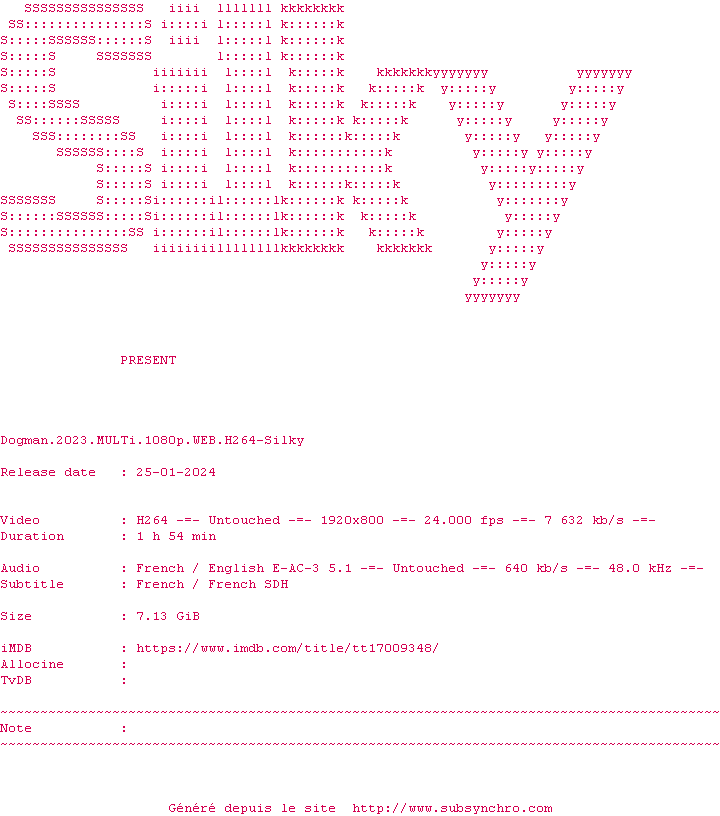 Voir le nfo de la release Dogman.2023.MULTi.1080p.WEB.H264-Silky