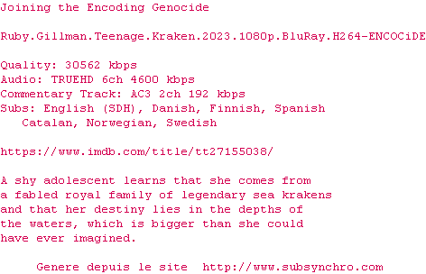Voir le nfo de la release Ruby.Gillman.Teenage.Kraken.2023.1080p.BluRay.H264-ENCOCiDE