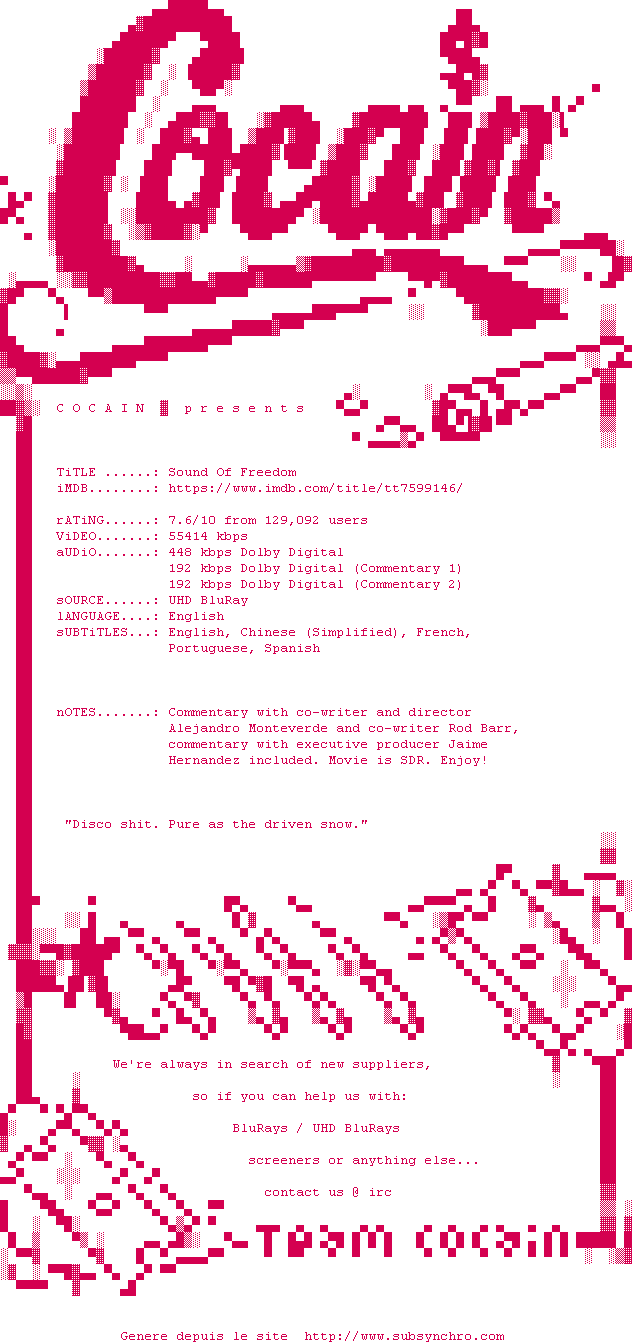 Le commentaire de ahuribarbu Commente par ahuribarbu (278), Le Lundi 15 Janvier 2024 à 18h08 Plongée de deux heures dans ce que l'être humain a de plus horrible, le trafic d'enfants vendus comme esclaves sexuels. Le film est assez inégal avec un scénario assez peu crédible à certains moments, mais l'ensemble est bien joué, avec une bande-son de toute beauté. De plus le sujet abordé est juste fondamental. Une certaine polémique existe autour de ce film, mais elle n'a aucun rapport avec le film en lui-même, juste avec des groupes ou des personnes qui en ont fait la promotion. A voir absolument pour prendre conscience d'un phénomène dont on parle clairement bien trop peu. 8.5 / 10 0 0