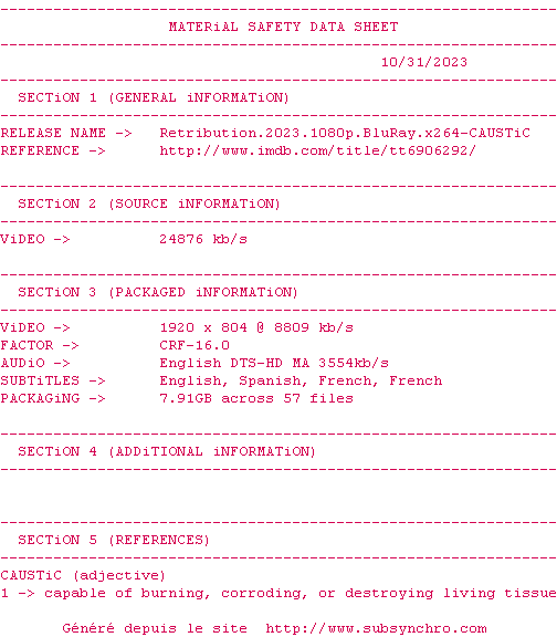 Voir le nfo de la release Retribution.2023.1080p.BluRay.x264-CAUSTiC