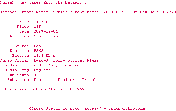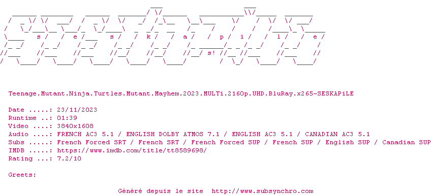 Ce film fait partie de la saga Les Tortues Ninja