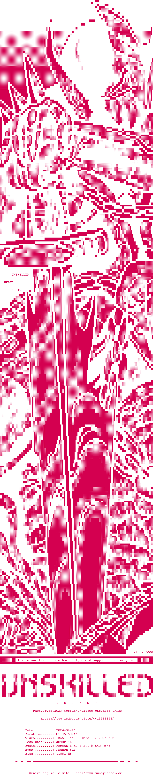 La release Past.Lives.2023.SUBFRENCH.2160p.WEB.H265-UKDHD est en 4K