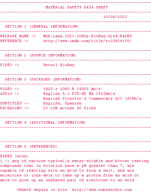 Voir le nfo de la release Mob.Land.2023.1080p.BluRay.H264-BASES