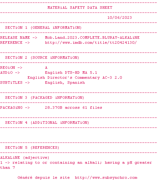 Voir le nfo de la release Mob.Land.2023.MULTi.COMPLETE.BLURAY-GMB