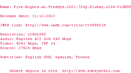 Voir le nfo de la release Five.Nights.At.Freddys.2023.720p.BluRay.x264-PiGNUS