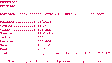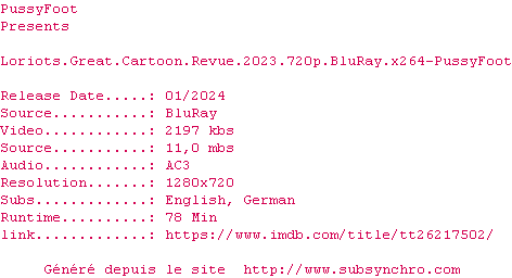Voir le nfo de la release Loriots.Great.Cartoon.Revue.2023.BDRip.x264-PussyFoot