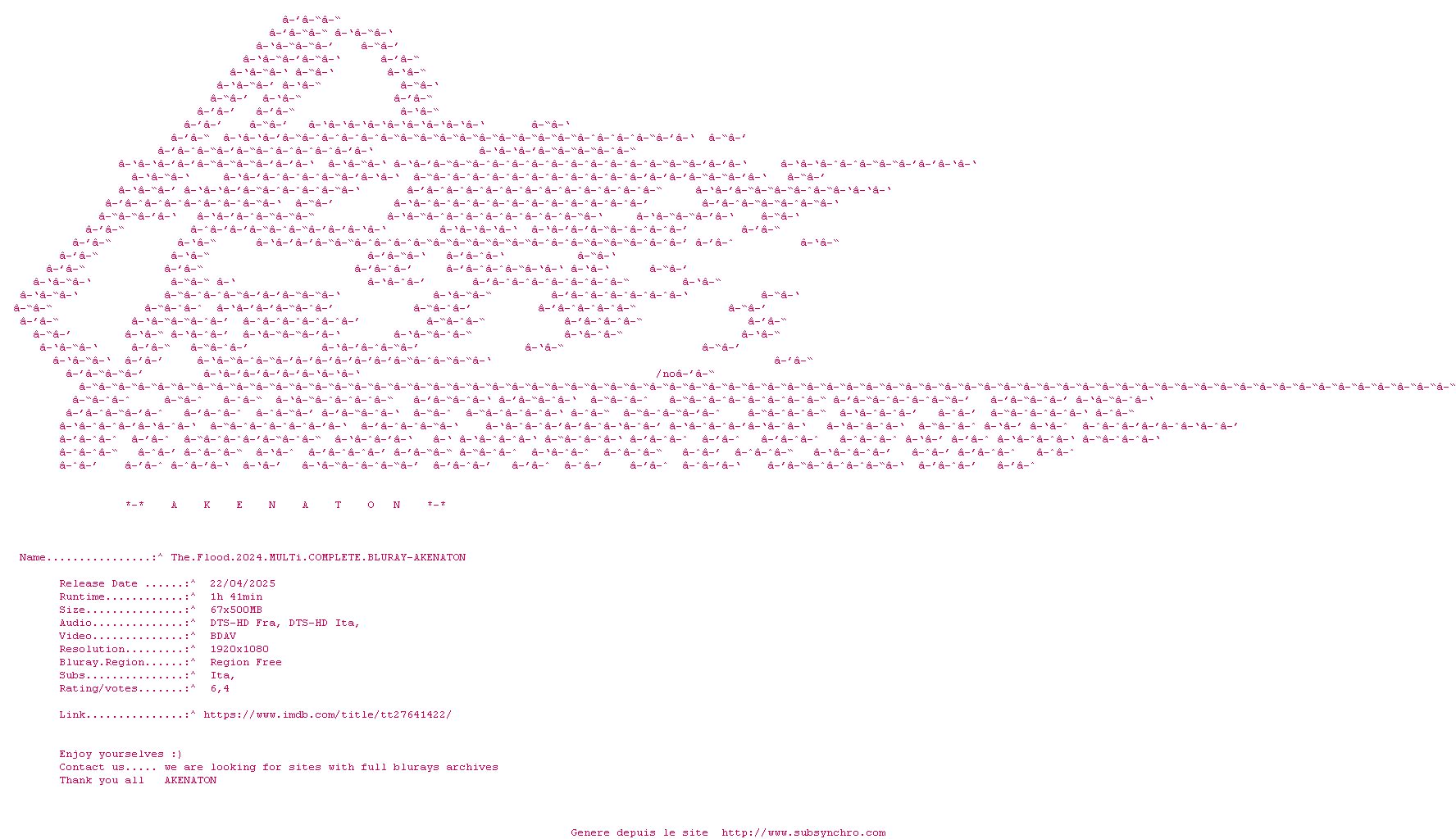 | Voir le nfo de la release The.Flood.2024.MULTi.COMPLETE.BLURAY-AKENATON | AKENATON | The.Flood.2024.MULTi.COMPLETE.BLURAY-AKENATON OpenSubtitles | 0 fichier | ||