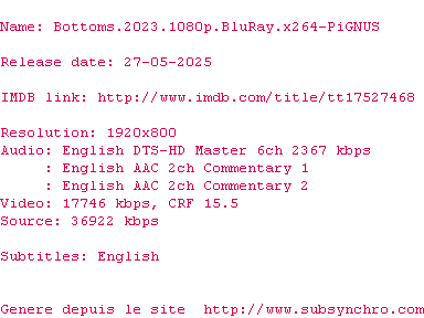 Voir le nfo de la release Bottoms.2023.1080p.BluRay.x264-PiGNUS