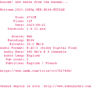 Voir le nfo de la release Bottoms.2023.1080p.WEB.H264-HUZZAH