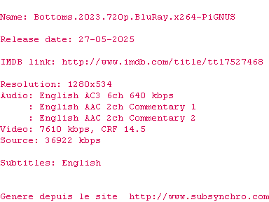 Voir le nfo de la release Bottoms.2023.BDRip.x264-PiGNUS